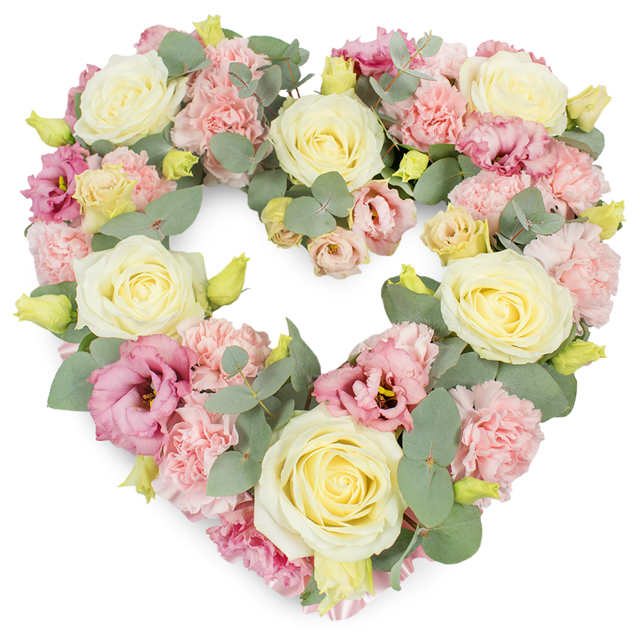 Immerse yourself in the beauty of remembrance with our Serene Tribute Floral Arrangement. This outstanding bouquet blends the purity of white roses, the gentle appeal of pink carnations, the subtle charm of pink lisianthus, and the natural grace of eucalyptus leaves. The harmonious color palette is designed to evoke a sense of calm and everlasting honor.
